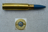 eine Deko-Patrone .335 On Target Technology Radius ( QUAL-CART 335 OTTR ) Eigenkaliber von OTTR aus .376 Steyr-Hülse 2004. Quality-Cartridge stellt ehemalige wildcats als Kleinserie mit korrektem Kaliber im Bodenstempel her. Patrone ist ohne Ladung, zum Nachweis ist eine Klapper-Kugel eingelegt.