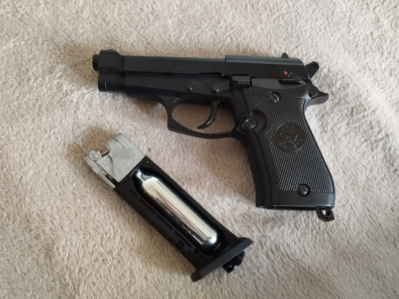 Ich verkaufe eine Beretta Luftpistole. Modell 84 FS Energiestufe (E₀) < 3,0 J Geschossgeschwindigkeit (V₀) 110 m/s (361 fps) Kaliber 4,5 mm (.177) BB Antrieb 1x 12 g CO₂ Magazin- / Trommelkapazität 17 Schuss Schusskapazität 100 Schuss Abzug Single Action Sicherung Schwenksicherung Länge 177 mm Gewicht 644 g Sie ist in einem sehr guten Zustand, sie hat nur minimale Gebrauchsspuren.