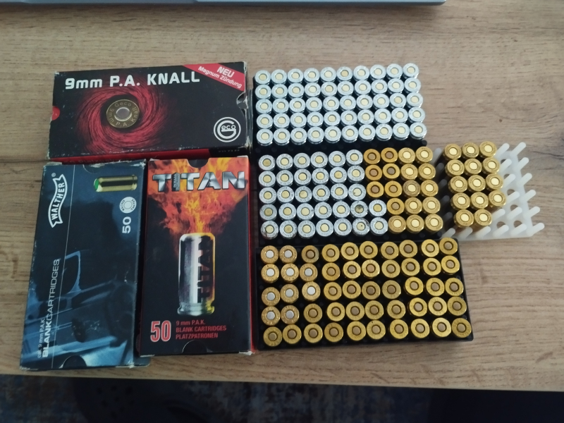 Wegen Abgabe der passenden Waffe biete ich 164 Platzpatronen von den Herstellern: Geco, Umarex und Walther im