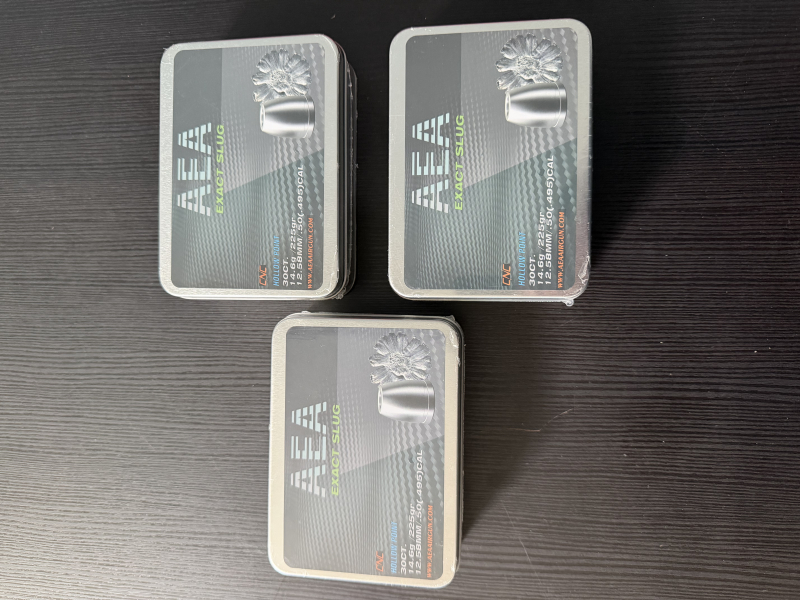 Zum Verkauf stehen hochwertige AEA Exact Slugs im Kaliber .50 (12,58 mm).