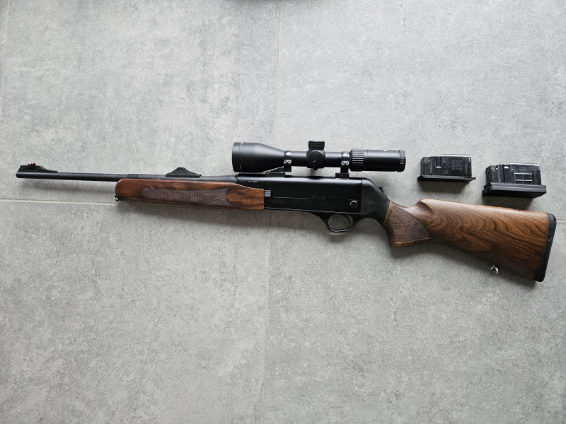 Zum Verkauf kommt eine halbautomatische Büchse bzw. Selbstladebüchse des Herstellers Haenel im Kaliber 9,3x62 mit einem AKAH Zielfernrohr und einer Vergrößerung von 2,5-10 sowie einem 50 mm Objektiv und dem Absehen 4 wie auf den Fotos dargestellt. Es handelt sich um das Modell 2000+ (Plus). Die Lauflänge beträgt 51 cm, die Gesamtlänge 107 cm und die Schaftlänge 37 cm. Die Waffe weist leichte Gebrauchsspuren auf, befindet sich jedoch in einem allgemein sehr guten Zustand. Die Montage für das Zielfernrohr trägt den Hersteller Rusan, die Montagebasis auf der Waffe den Hersteller EAW (Ernst Apel Würzburg). Die Waffe wurde jagdlich geführt und wenig genutzt. Der Lieferumfang umfasst zwei Magazine, ebenfalls wie auf den Fotos dargestellt. Die Waffe wurde 2017 in Suhl beschossen. Bei Fragen gern eine kurze E-Mail. Viel Spaß beim Bieten.