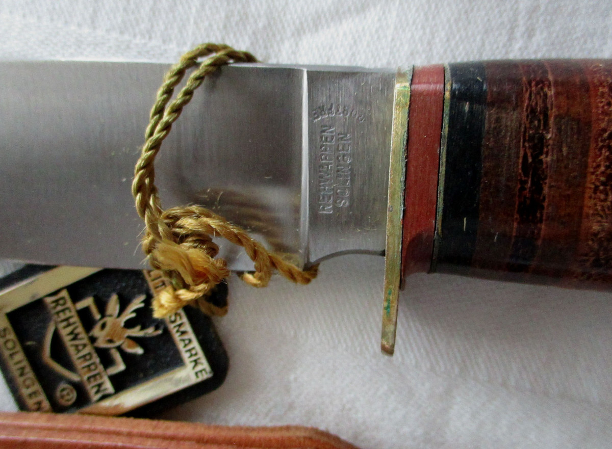 Linder Rehwappen Spitzenklasse Solingen Bowie Jagdmesser Fahrtenmesser ca. 21,5 cm original Lederscheide Seltenes Jagd – Fahrten – Messer der Firma Linder, Solingen. Wurde wohl in den 1970er Jahren hergestellt.