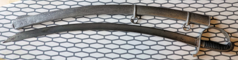 Sie bieten hier auf einen original Schweren getragenen Säbel, könnte Kavallerie sein, so zwischen 1800 und 1850, keine Stempel sichtbar, die Klinge ist im vorderen Teil zweischneidig, Eisenmontierung, die Scheide ist aus Eisen, mit Narben,