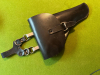 Rechtshand, Lauf geschlossen, aus noch neuwertigem schwarzem Leder, seltsamerweise ohne Magazintasche und innen auch original gestempelt