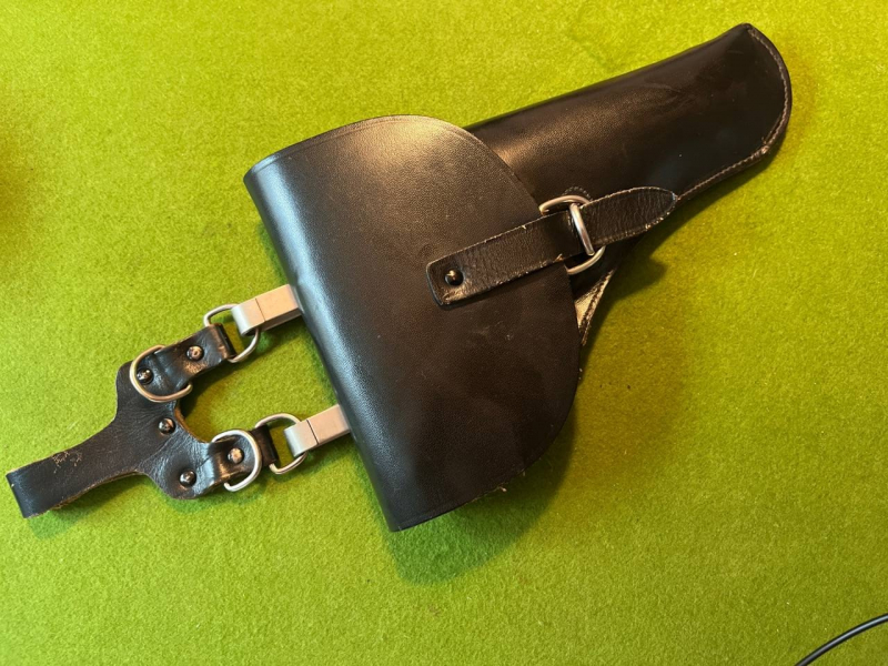 Das Holster ist wahrscheinlich selten, sicher interessant für eine Vitrine, sei es wenn man die richtige oder "nur" ein Modell der scharfen Waffe hat.