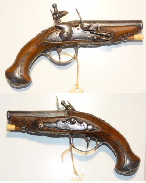 Original Steinschlosspistole, Reisepistole um 1820, keine Herstellermarke, Lauflänge 87mm, Gesamtlänge 19,4 cm, Kaliber 11,5 mm, gezogener Lauf, was bei solchen Modellen sehr selten ist, voll funktionsfähig