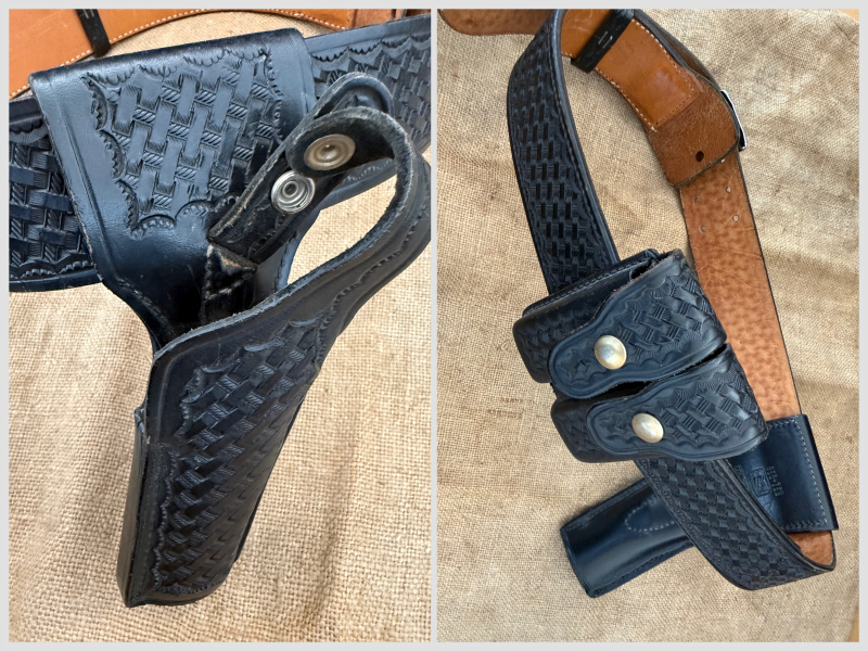 Sie bieten hier auf ein originales US-Polizei Holster für die Colt Government 1911, mit Gürtel und Magazintasche, also ein komplettes RIG aus echtem Leder in einem sehr guten Zustand. Stammt aus den USA und wird so von der US-Police getragen. Der Gürtel ist für Größe/Umfang 42“ (106cm), es sind aber standardmäßig Löcher vorhanden um die Größe auch min. 20cm zu reduzieren, also bis auf ca. 85cm. Originales Stück in einem wirklich schönen Zustand.