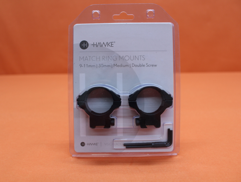 HAWKE Montageringe Match 30mm medium (22107) BH=11mm Alu schwarz matt mit 2 Schrauben für 9-11mm Prismenschiene (Aufkipp-Montageringe).