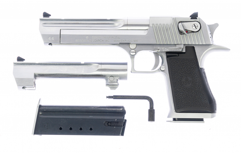 The ultimate semi-automatic pistol with an interesting locking system: a bolt head with rotating lugs that lock into the barrel.