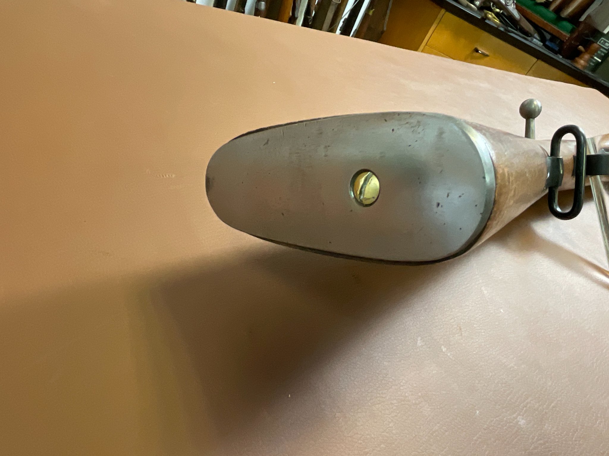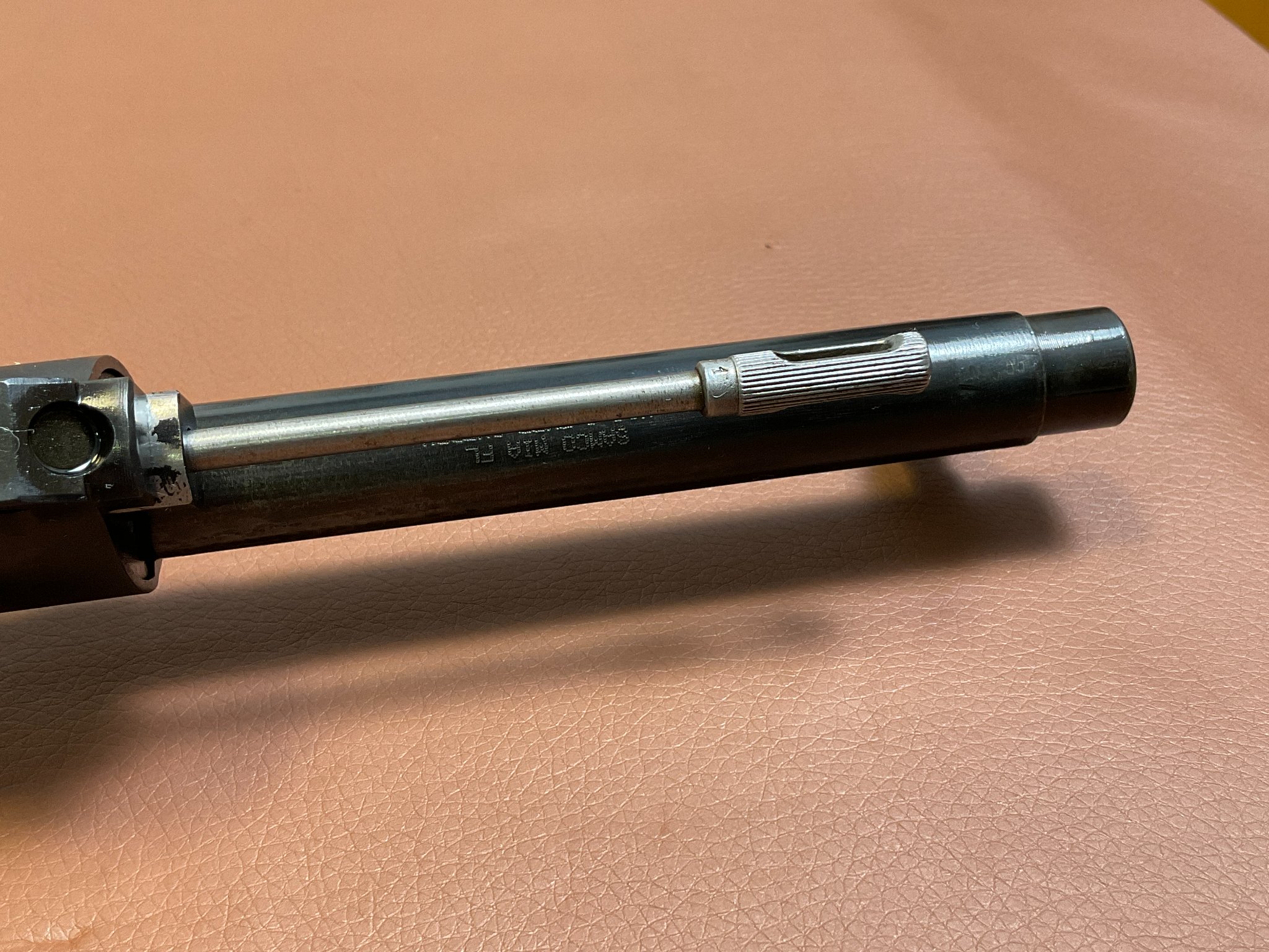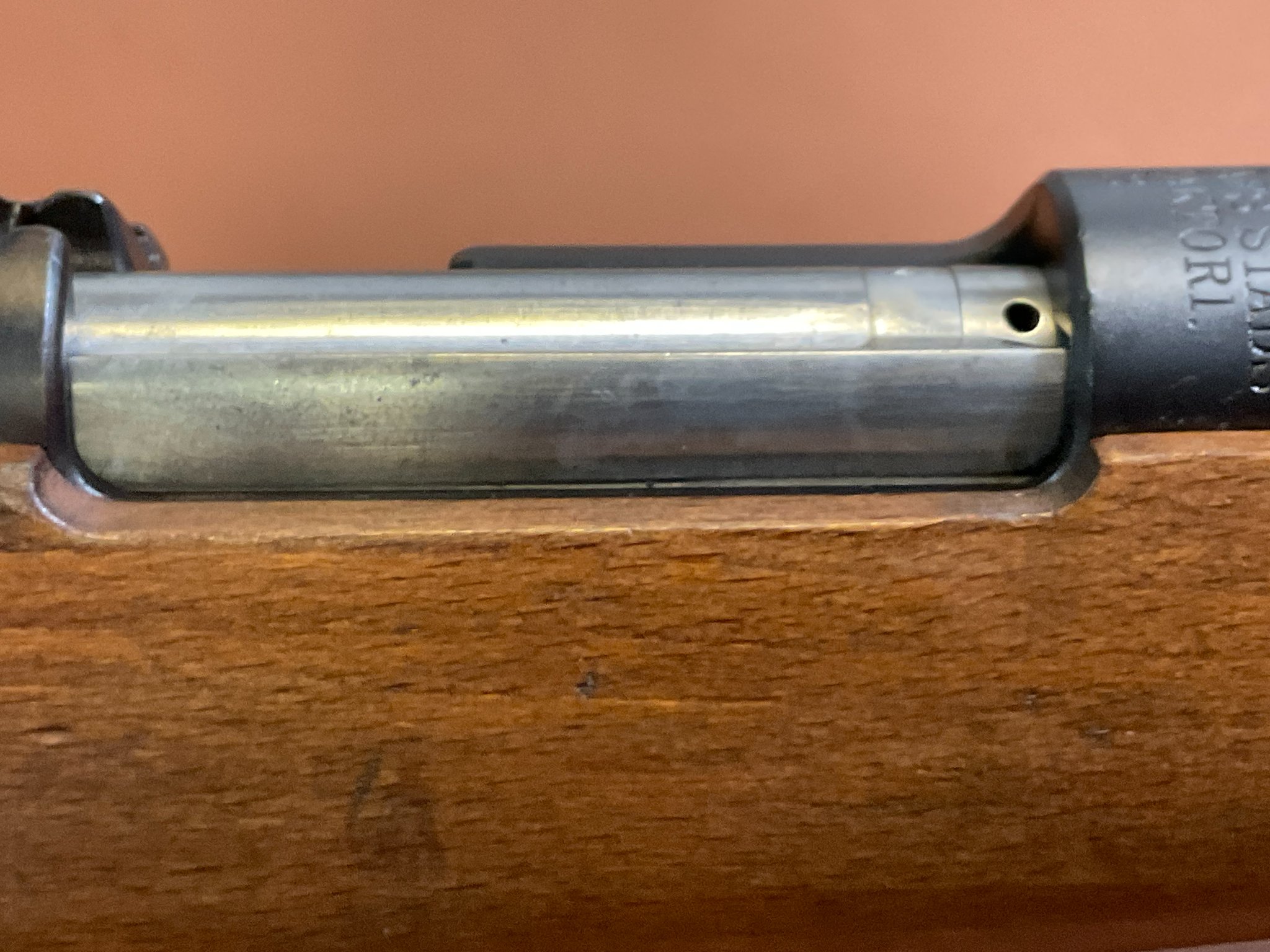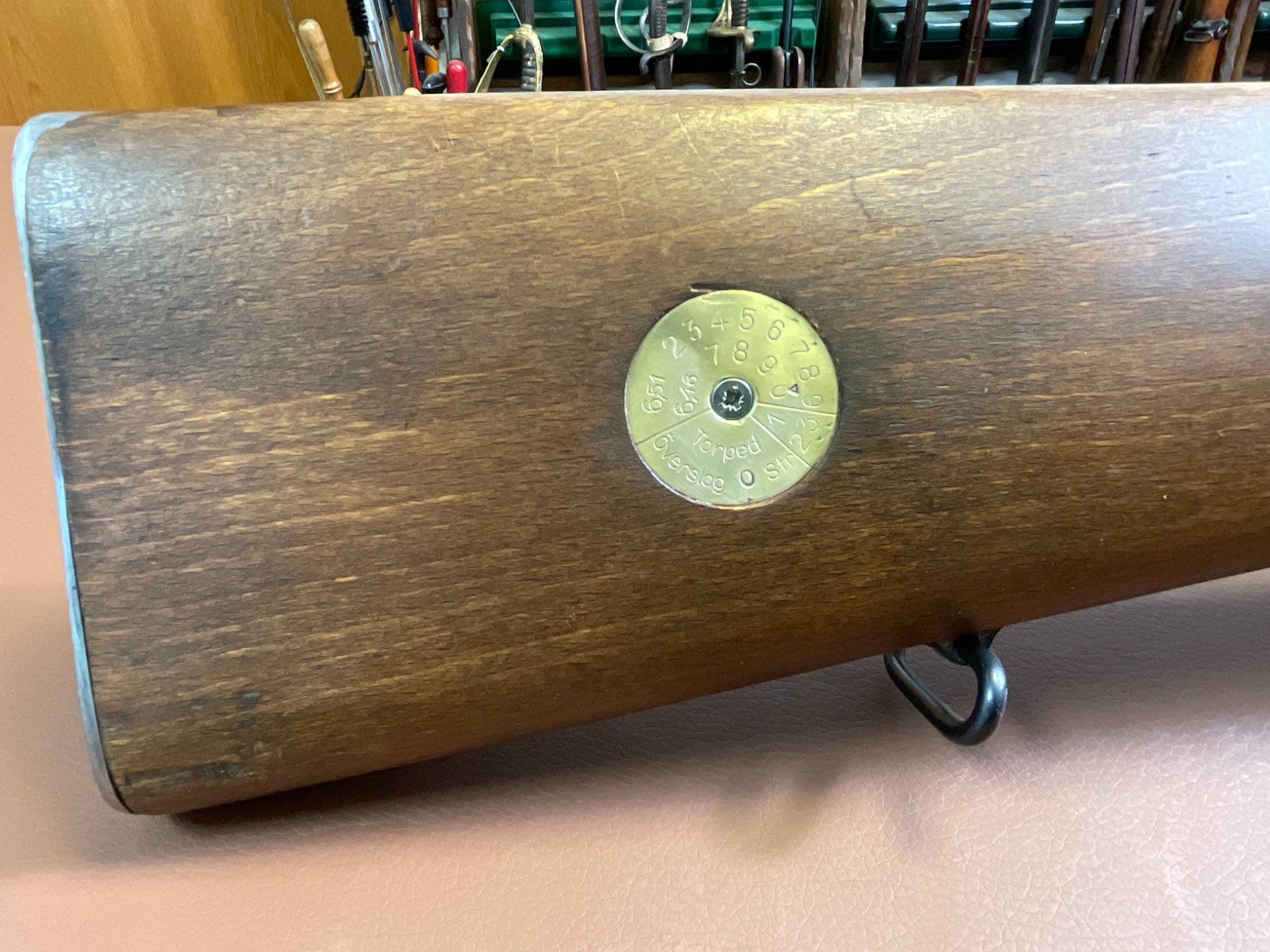 Der Lauf ist spiegelblank und weist eine sehr gute Schussleistung auf. Der Holzschaft zeigt leichte Gebrauchs- und altersbedingte Restaurationsspuren (siehe Bilder).