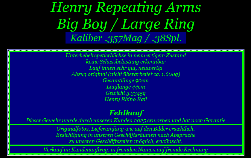 Henry Repeating Arms Big Boy / Large Ring Kaliber.357Magnum / .38Spl.