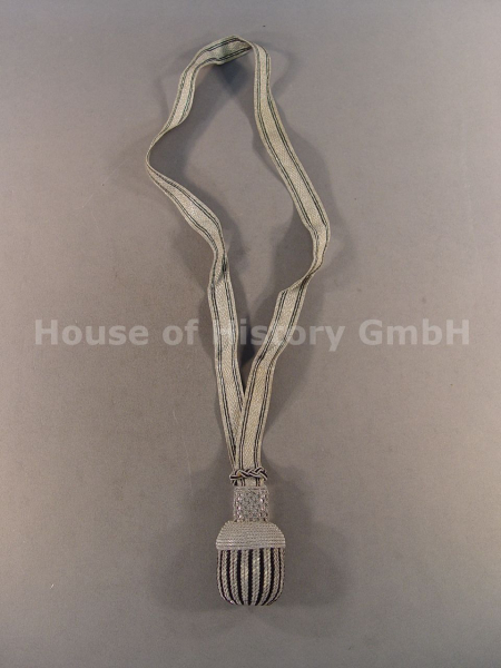 Portepee zum SS-UNTERFÜHRERDEGEN, komplett mit schwarz/silbernen Schieber und Pommel, sehr schöner Zustand, extrem seltenes Ersatzteil
