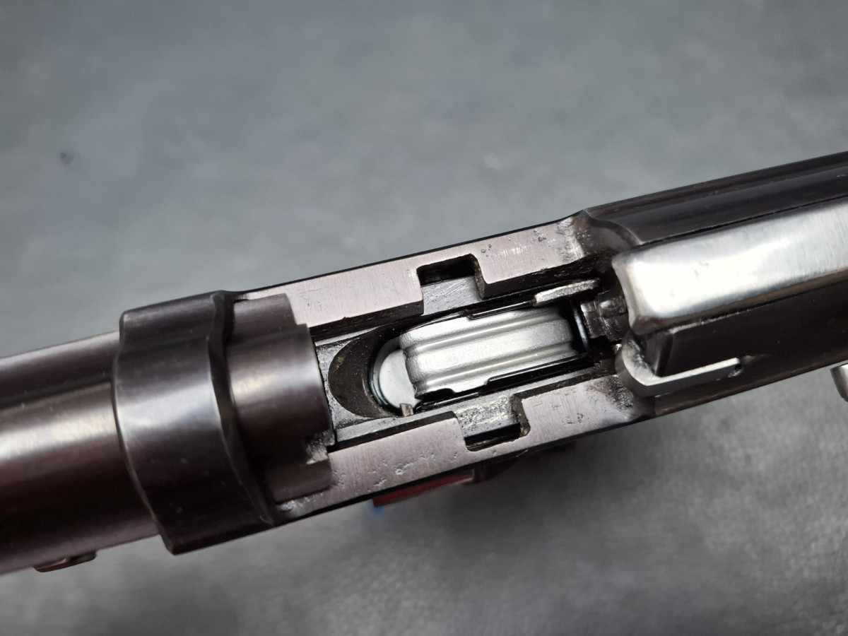 Lauf altersmäß leicht raue Oberfläche, verhältnismäßig aber noch sehr gut, Züge und Felder deutlich