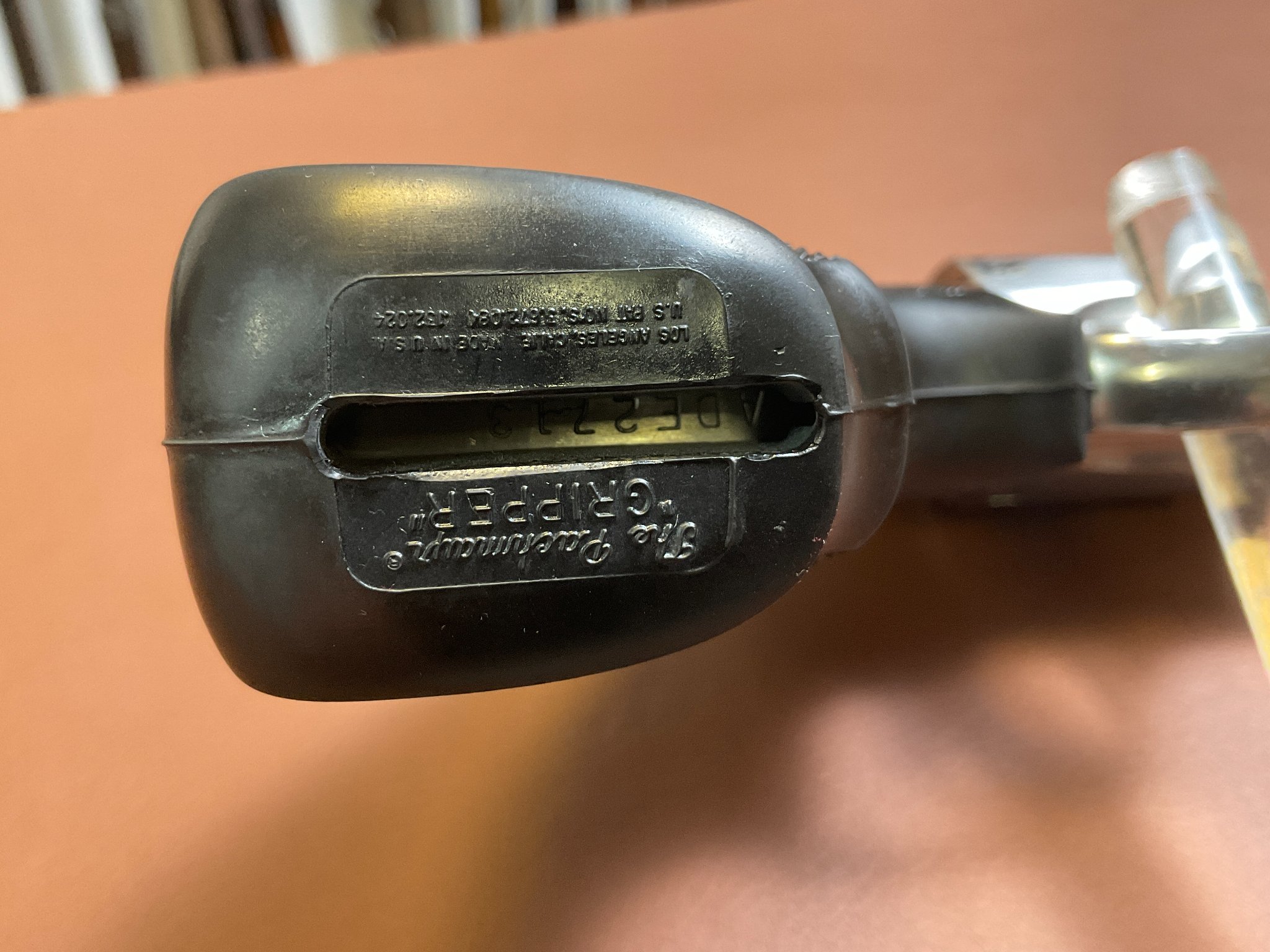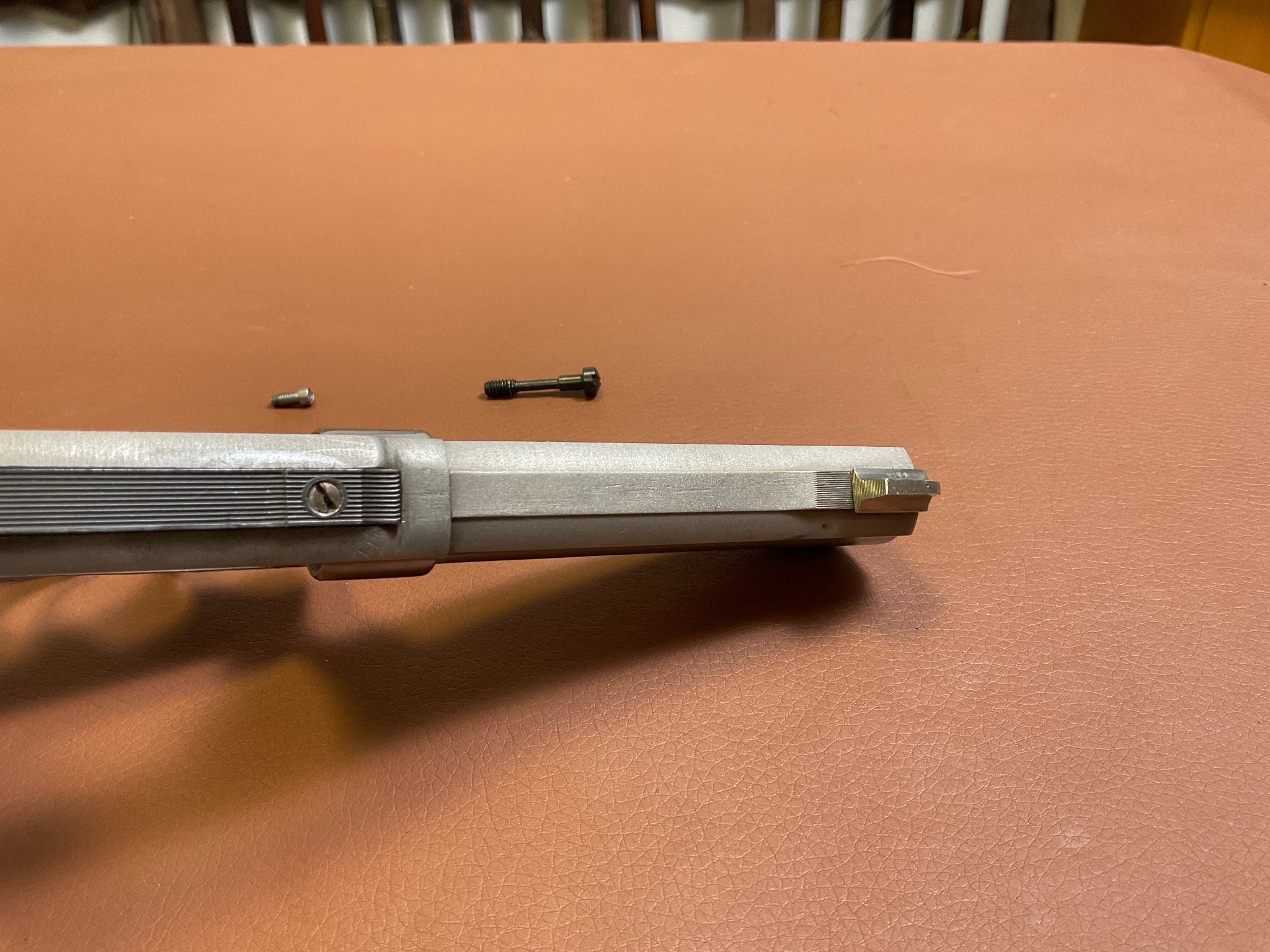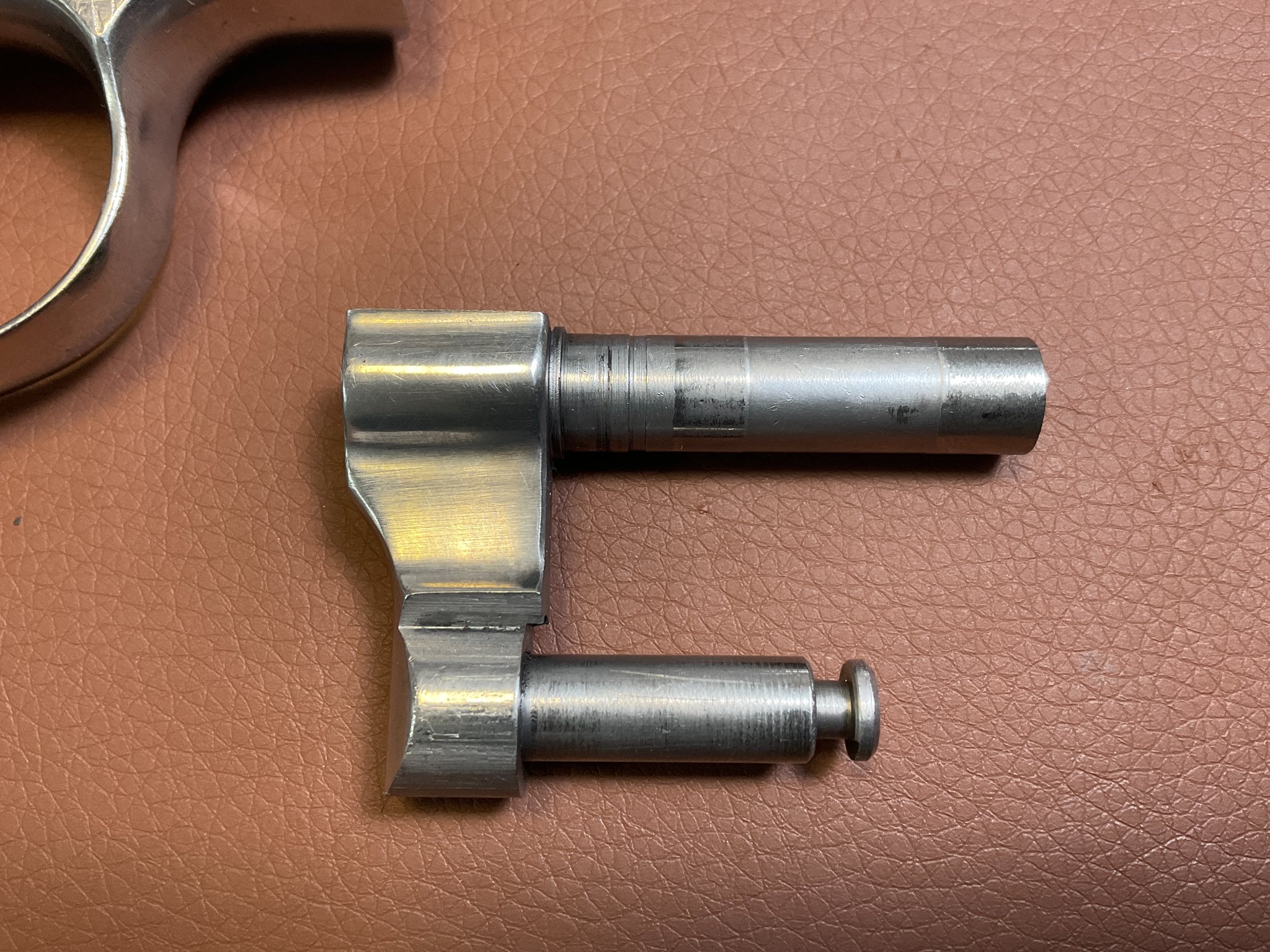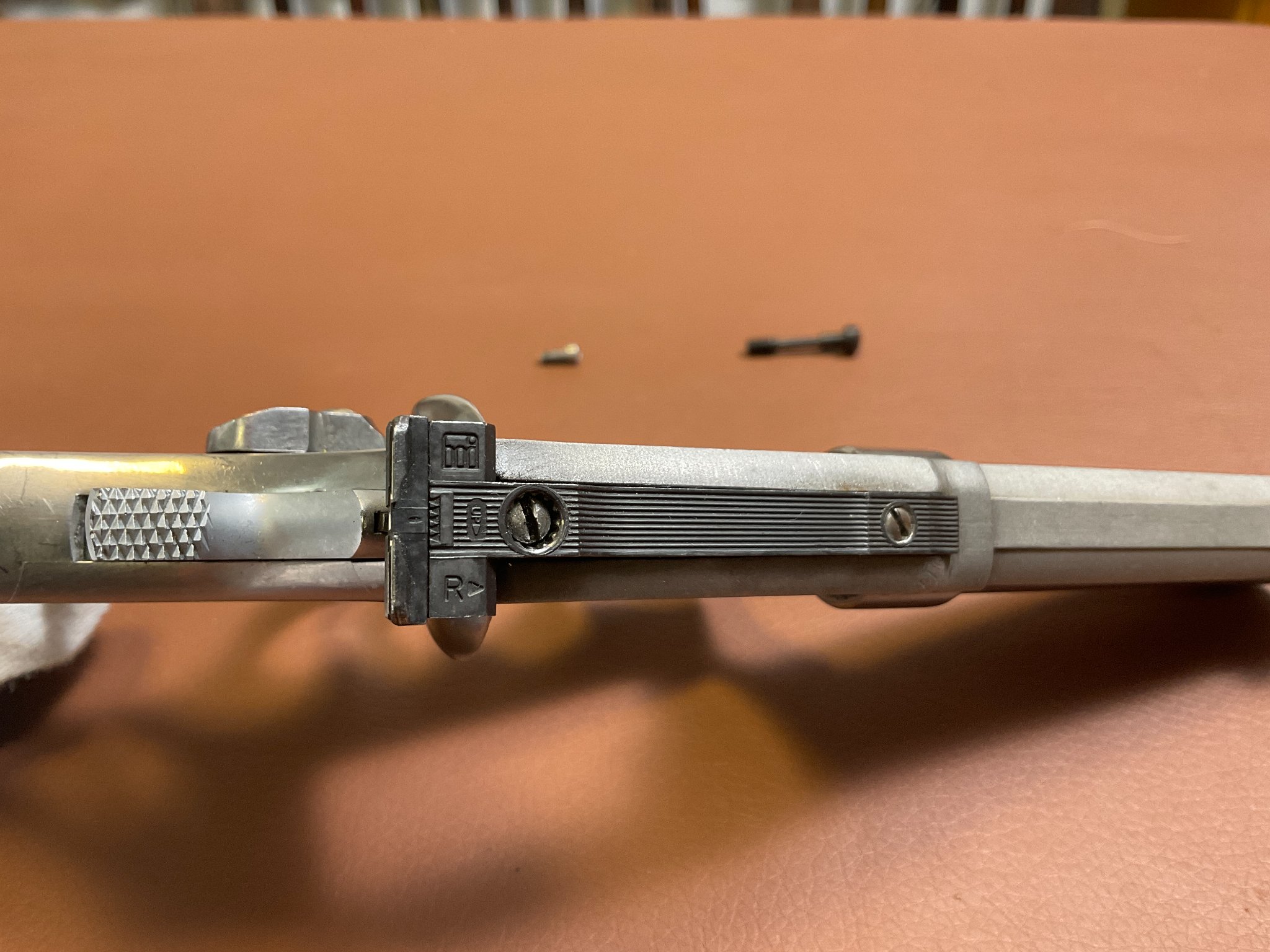 Unter der rechten Griffschale befindet sich eine Gravur des Vorbesitzers. Der Revolver weist leichte, altersbedingte Gebrauchsspuren auf, befindet sich jedoch insgesamt in einem guten Zustand.