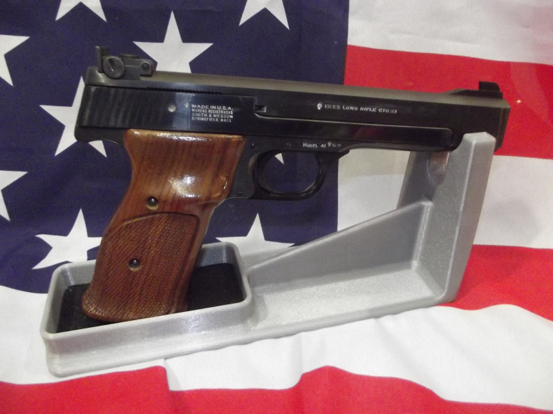 Tur Auktion kommt eine Pistole im Kaliber 22lfb das legendäre Modell 41 das immer NOCH gebaut und von der Fa. WAIMEX importiert wird laut 26er Waimex-Katalog kostet die Waffe derzeit € 2769,00,- die angebotene Waffe befindet sich in einem TOP Neuwertigen Originalzustand und ist kaum oder (NICHT?) geschossen siehe Bilder.