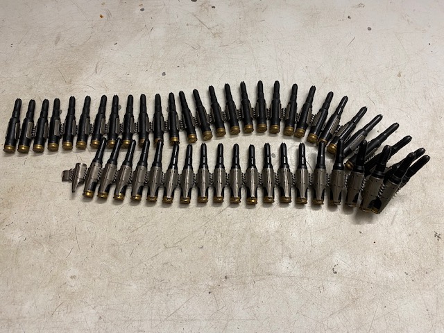 Zur Auktion kommen 48 Schuss Platzpatronen 7,62x51 gegurtet . Kunststoff schwarz mit Messing Boden.