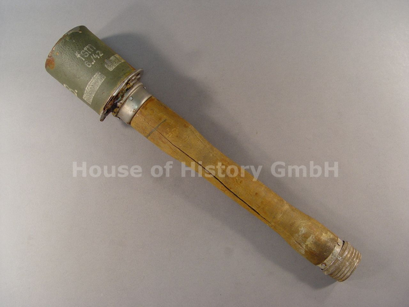 Wehrmacht Heer Schnittmodell einer original Stielhandgranate Modell 24, Topf mit Hersteller "fsm 6./42", Stiel mit Hersteller "ЯR 796 1940" (wohl Richard Rinker), komplett mit allen Teilen mit original Lack, FREI von gefährlichen Stoffen, sehr selten