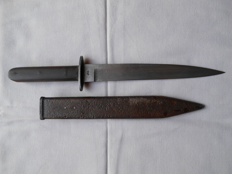 ... antiker KuK Grabendolch aus 1. Weltkrieg, Hersteller "Wiener Waffen Fabrik", mit Abnahme, Scheide - etwas schwergängig !!, alles fest.