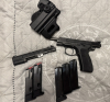 Dazu gibt es 2 Magazine in .22lfb , 3 Magazine in 9x19mm und ein Holster mit Magazinhalter.