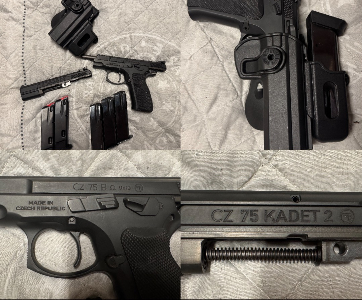 Es handelt sich um eine CZ 75 Omega B in 9x19mm. Sie ist mit einen Wechselsystem CZ 75 Kadet 2 in .22lfb ausgestattet.