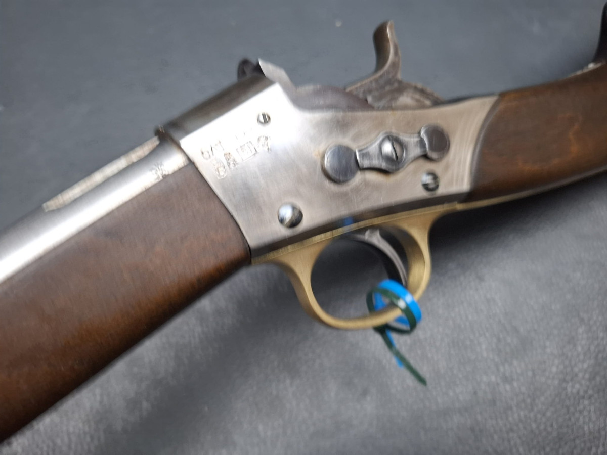 Blockverschluss Rolling Block Handspanner, Sattelring, Nussbaumschaft ohne Backe, mit Messingschaftkappe