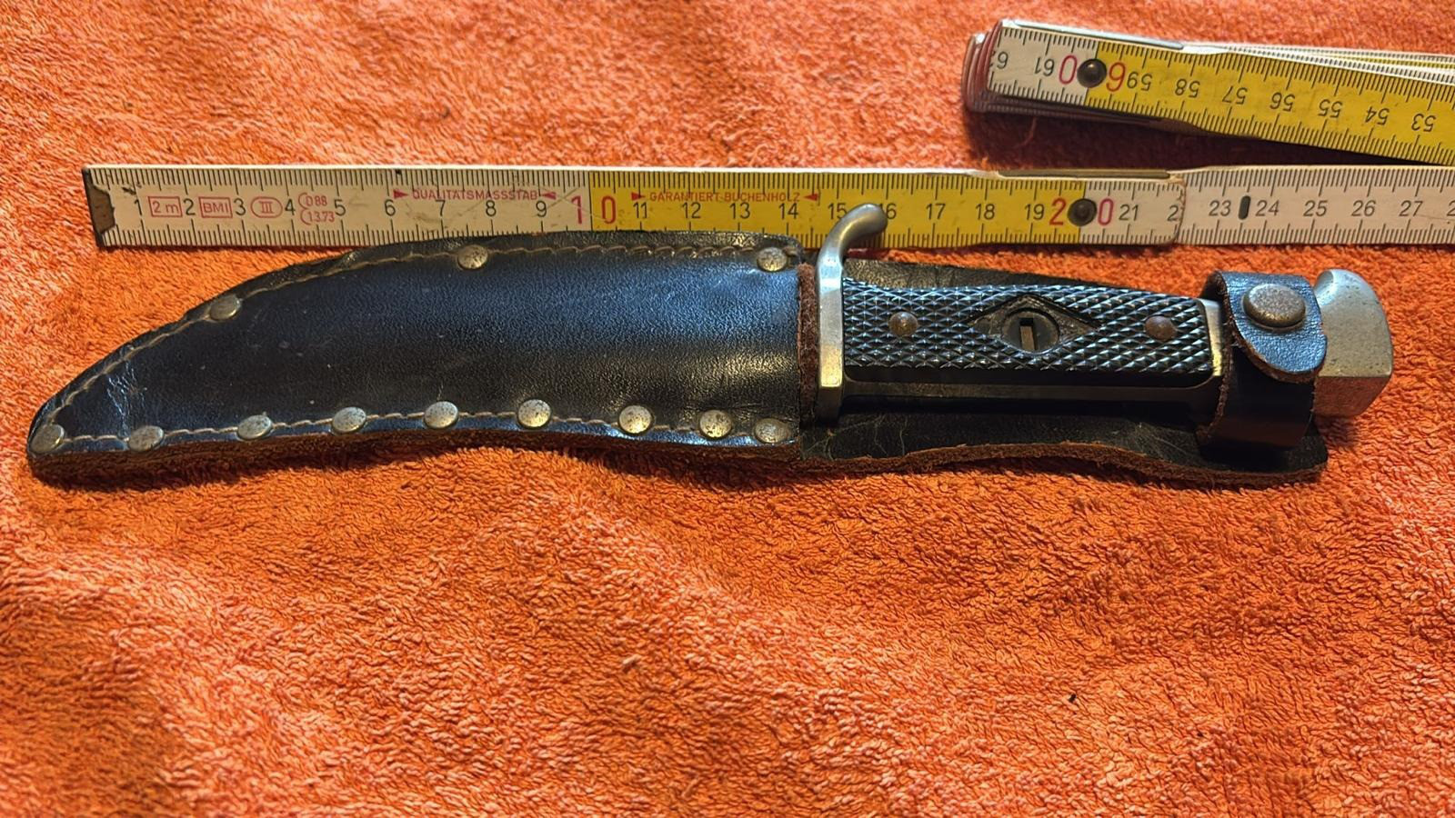 Dies Fahrtenmesser aus den 60er Jahren hat jahrzehntelang auf dem Dachboden gelegen und ist m.M. nach in einem altersentsprechenden Zustand.