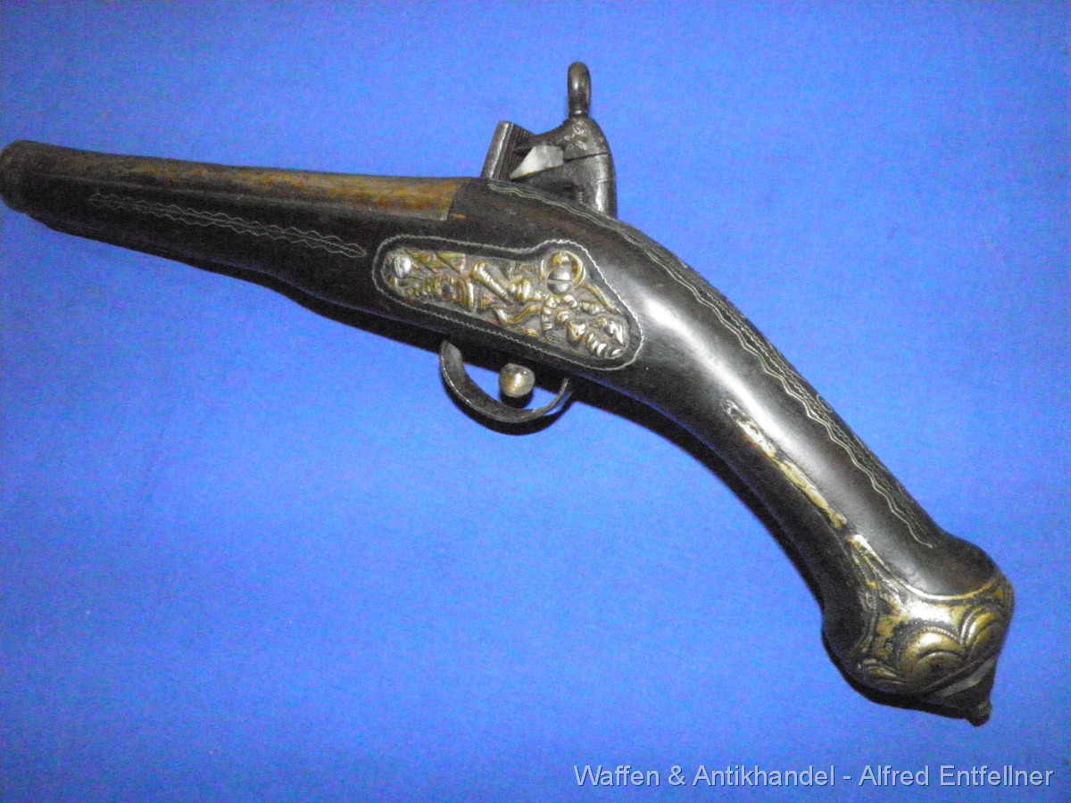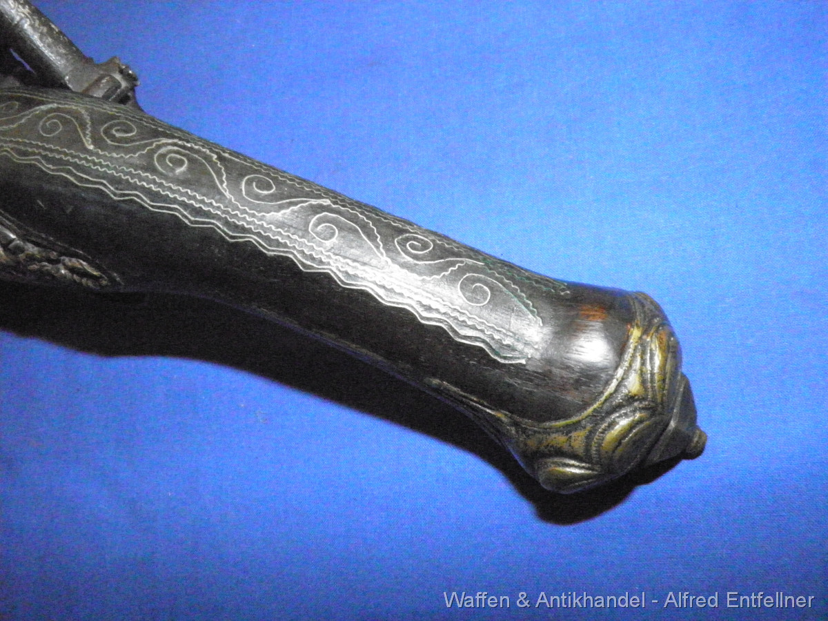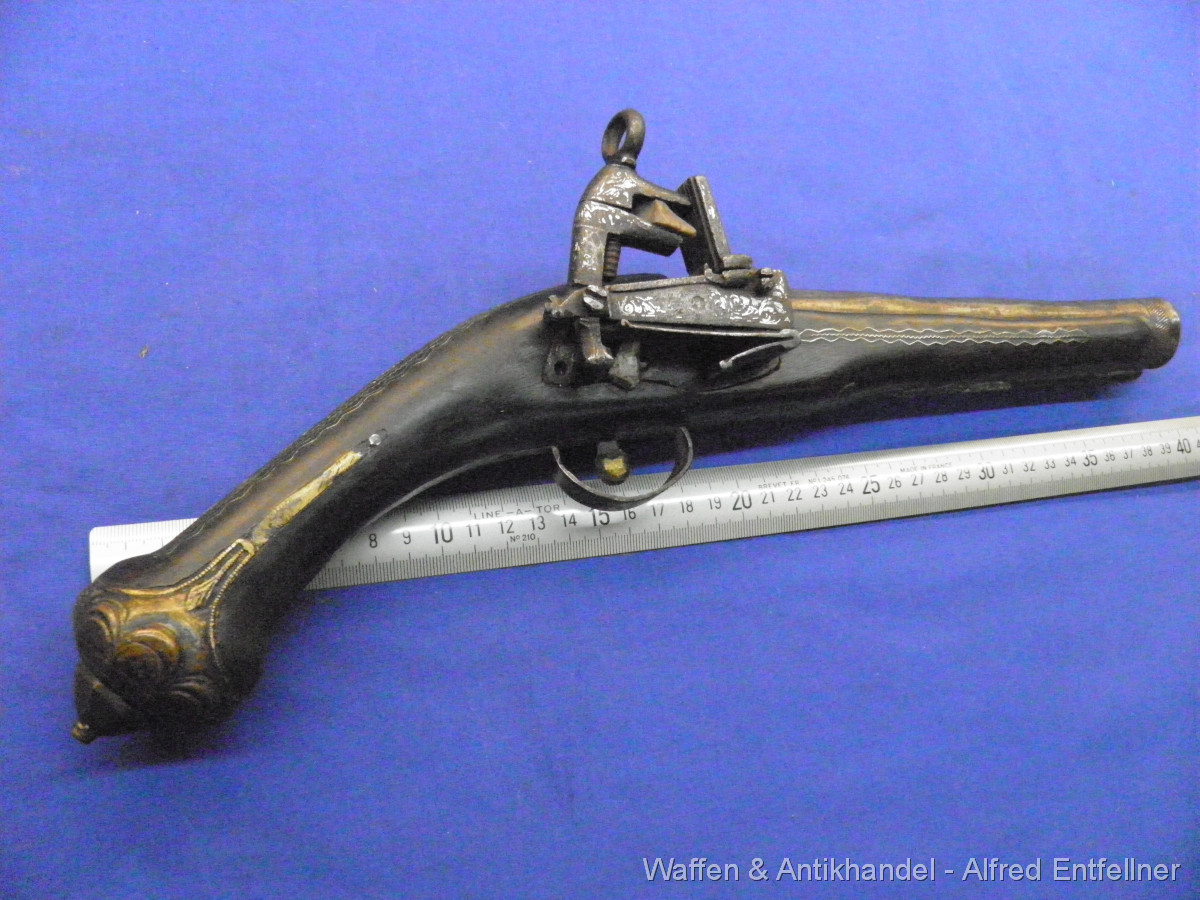 Uralte Vorderladerpistole mit Miquelett Hahnschloss. Ausführung Blunderbuss Mündung weite bei 25 m/m