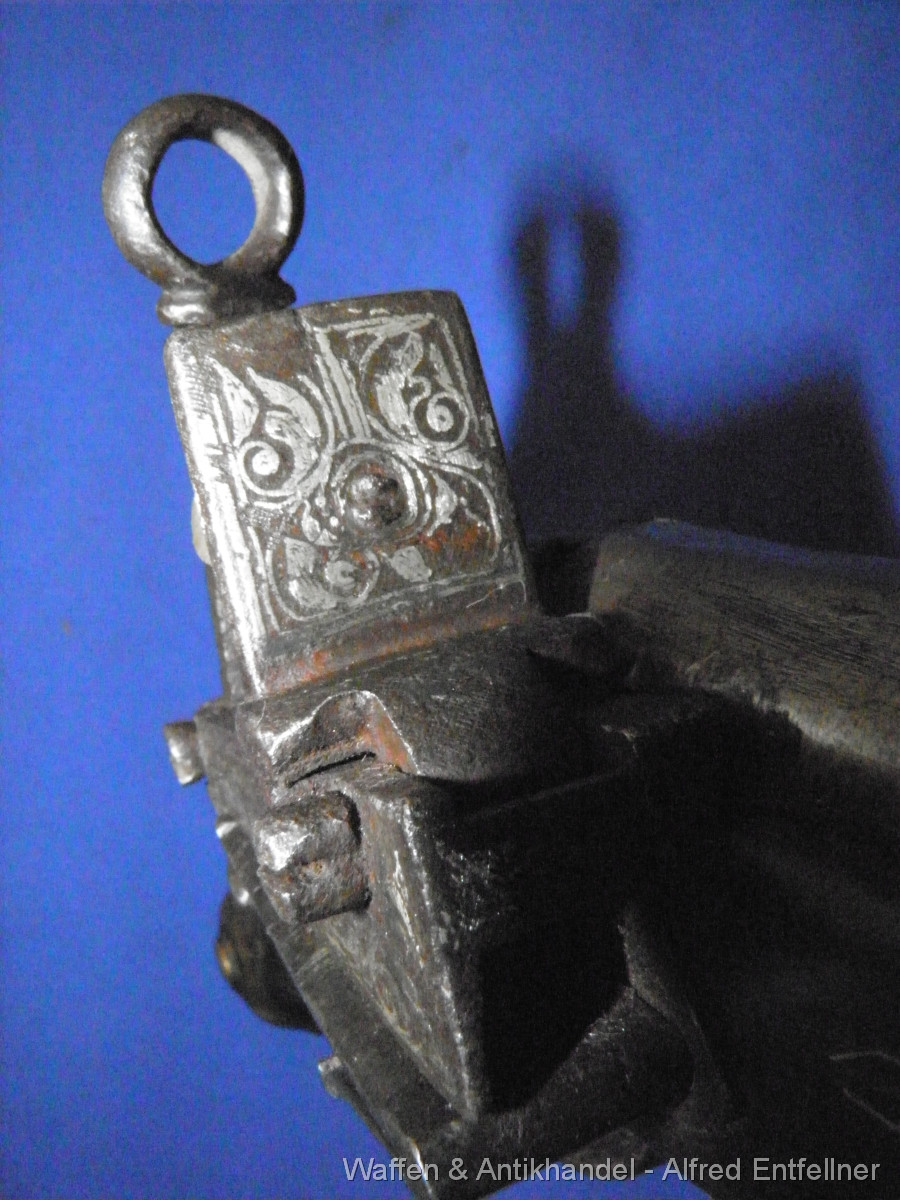 Schöne verzierungen, Silbereinlagen Schloss lässt sich spannen und abschlagen.