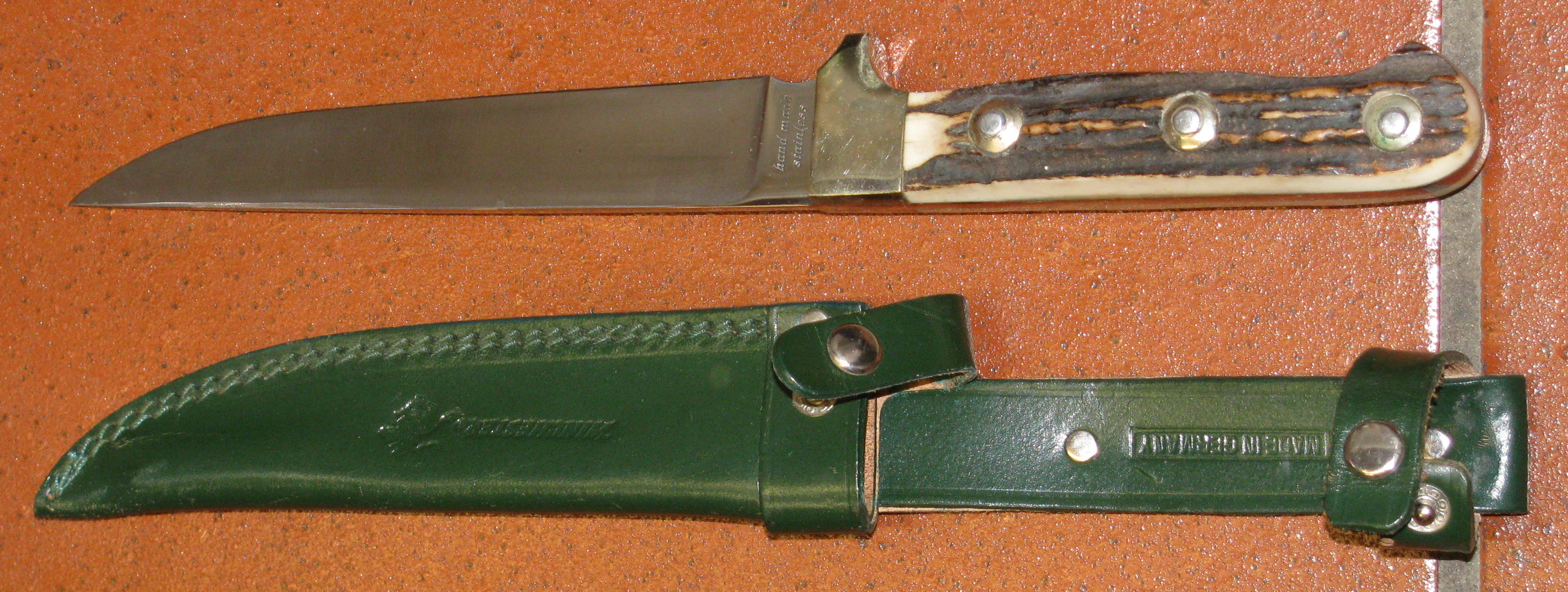 Interessantes Jagdmesser mit Horn und " WINCHESTER " und Nummer 900