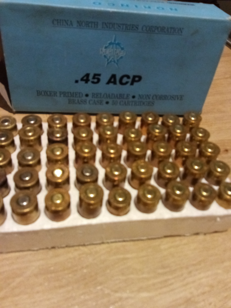 Sie bieten hier auf 50 Ladefertige Hülsen Cal 45 ACP. Die Patronen wurden 1 x Abgefeuert, die Hülsen , nass und mit Ultraschal gereinigt Kalibriert und neu gezündert, nicht Poliert, aber sehen und entscheiden Sie selber.