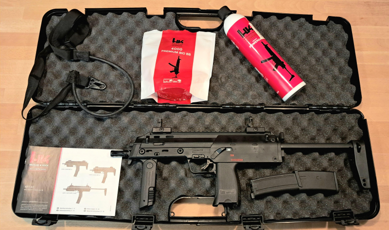 Biete eine Heckler & Koch MP7 A1 Softair-Gewehr Kaliber 6 mm BB Gas Blowback (P18) inklusive umfangreichem Zubehör an.