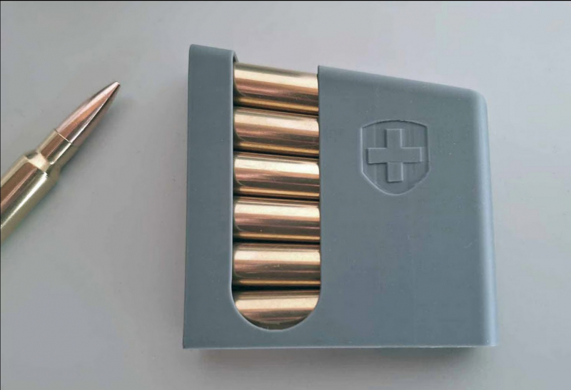 Der aus Kunststoff gefertigte K31 Laderahmen dient dazu, Patronen bereitzuhalten und das Laden des Schweizer Ordonnanzgewehrs K31 zu erleichtern. Die Patronen werden in den Rahmen geladen und können so schnell und zuverlässig in das Magazin des Gewehrs zugeführt werden.