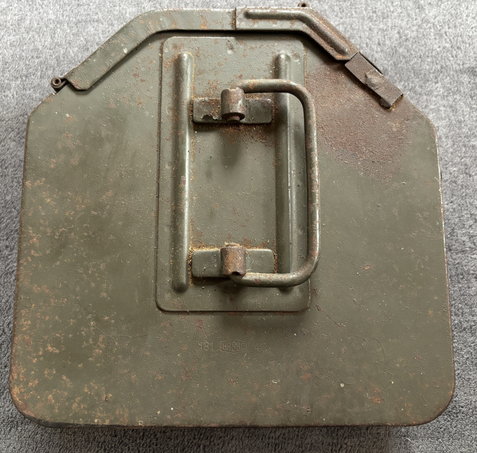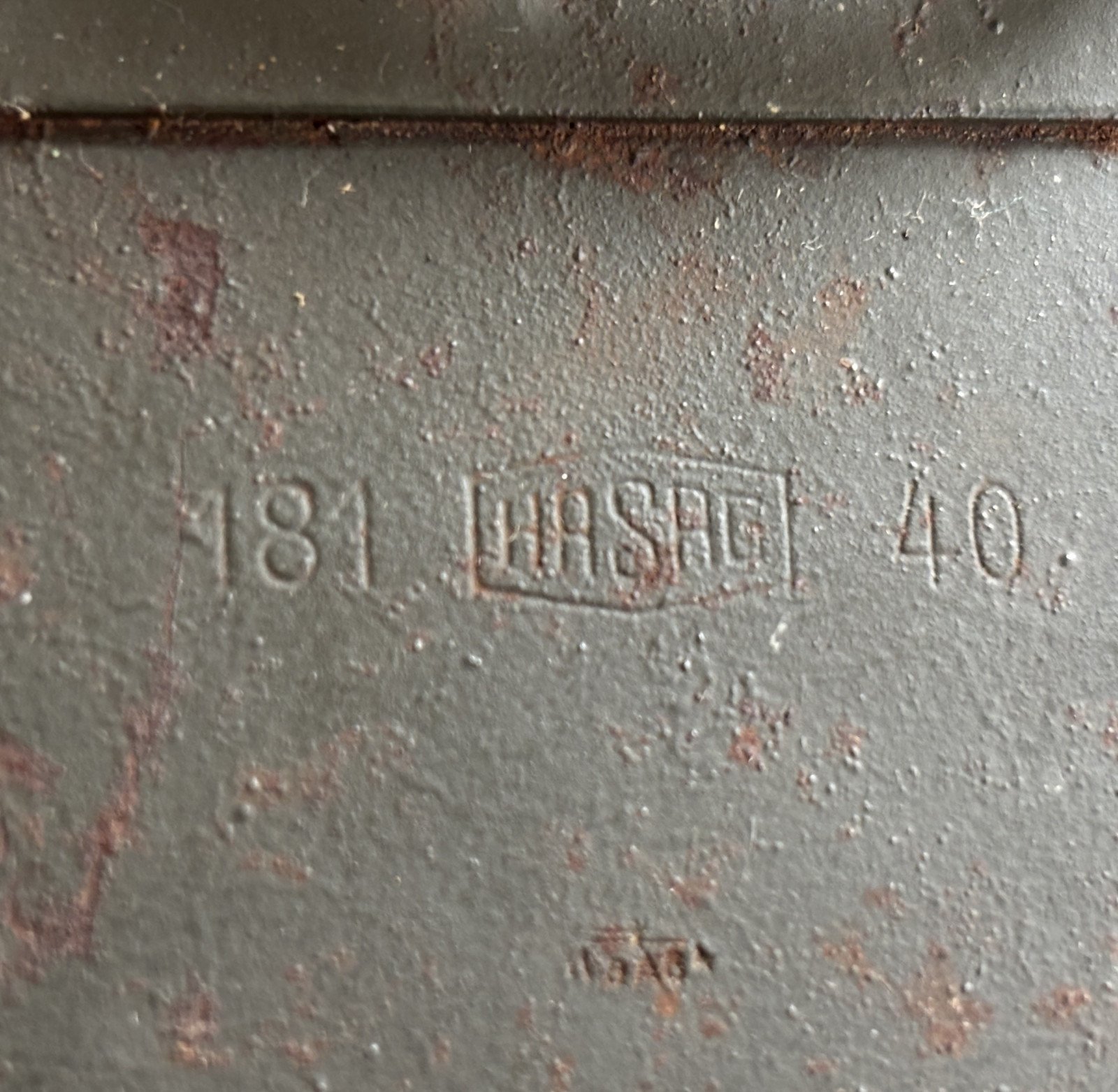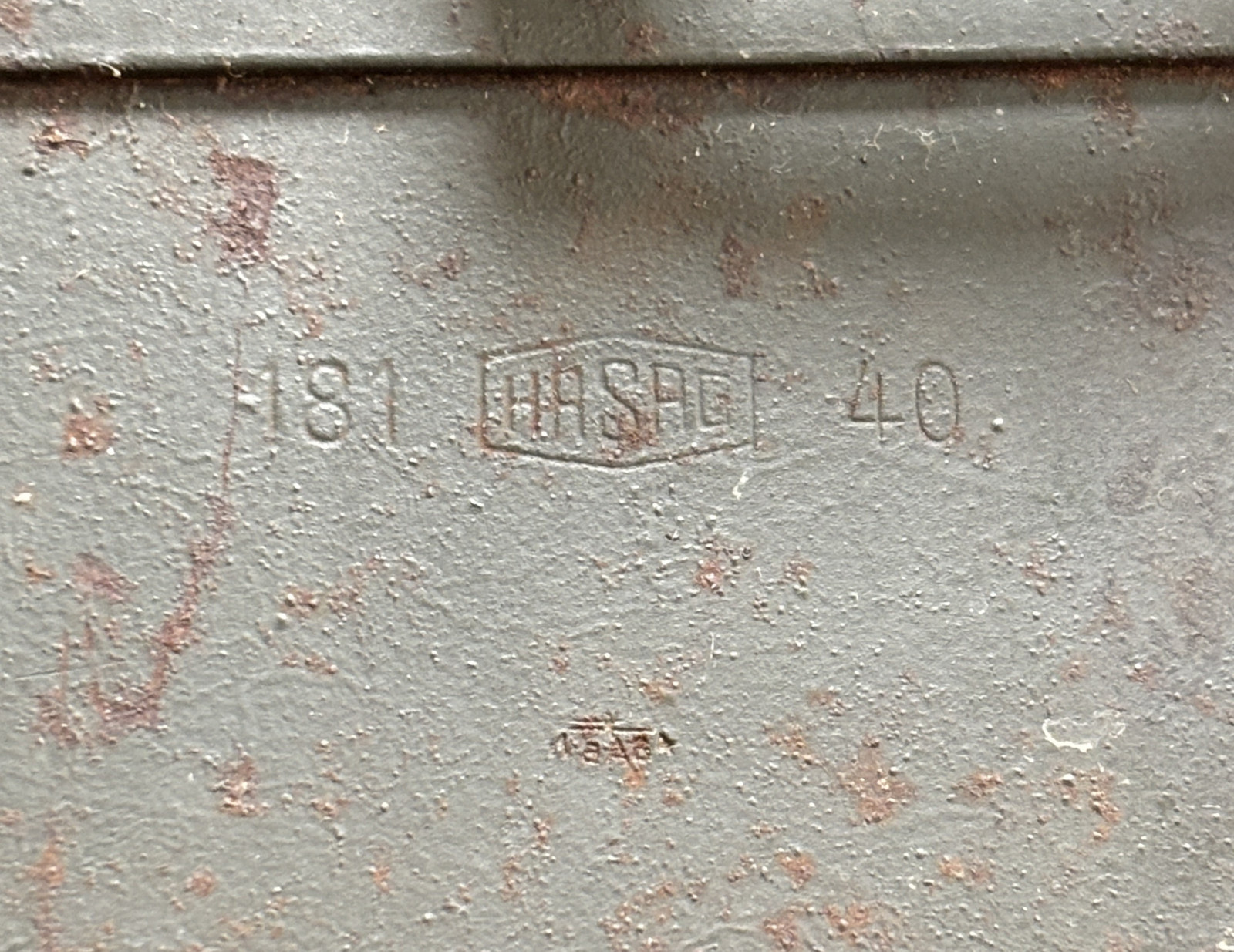 Auf dem Kasten befinden sich folgende Stempel : 181 HASAG 40 und WaA ( siehe Fotos )