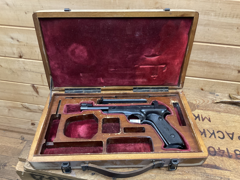 Sonstiges: mit 2 Einsteckmagazinen, mit Triggerstop, mit Holzkoffer, sehr gute Schussleistung!!! Schrankwaffe!!!