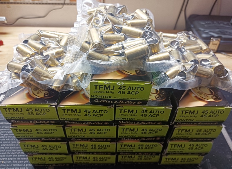 1000 Stück .45 Auto ACP Hülsen von Sellier & Bellot NONTOX teilweise in Originalverpackung wie abgebildet.