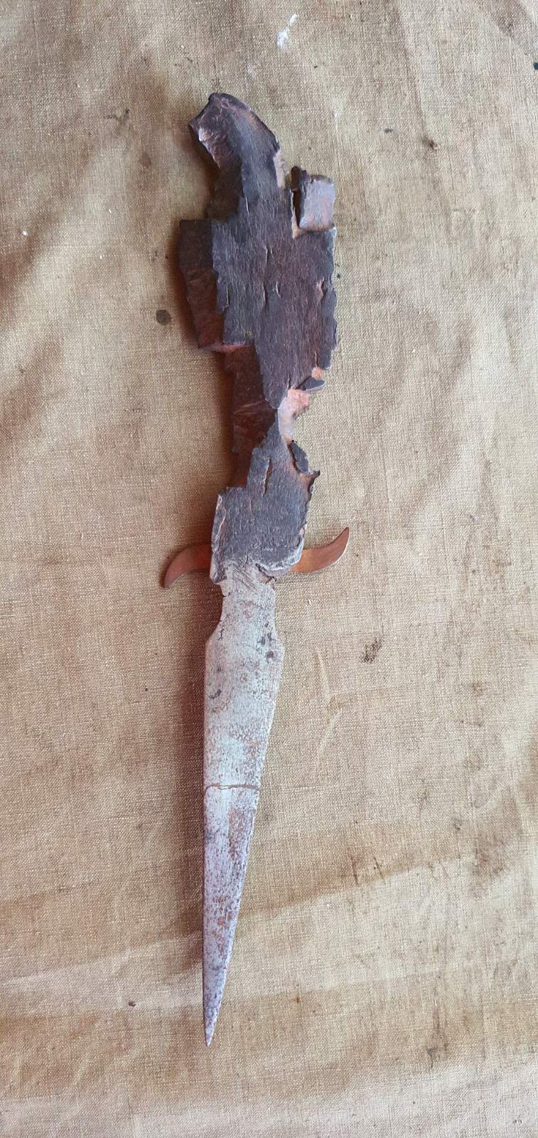 Schützengrabenmesser – Handarbeit aus Granatsplitter (Erster Weltkrieg)