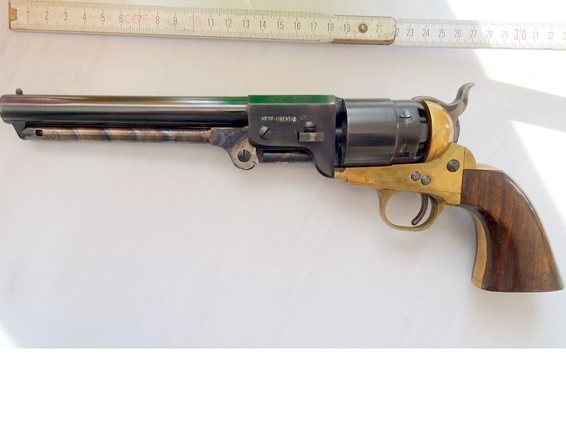 Zur Versteigerung kommt 1 Stück gebrauchter Revolver "Hege Uberti", Kal. .44BP. Der Lauf ist spiegelblank, hat scharfkantige Feldern und Züge, ohne Rost u. Ablagerungen. Schöne Holzgriffschalen. Gültiger Beschuss. Die Bilder stellen den Zustand der Waffe dar. Aber seht selbst! Die Waffe ist in eine grüne WBK eingetragen. Da ich die Waffe von Privat in Komission verkaufe, wird das Garantie- u. Rückgaberecht für diese Waffe ausgeschlossen. Die Waffe trägt gültigenen Beschuss, deshalb verkauf an Waffenhändler u. Sammler Schützen u. Jäger. Käufer trägt Versandkostenpauschale von 49,00 Euro. Vorbesichtigung nach Absprache erwünscht. Korospontenz und Versand nur Freitag, Samstag und Sonntag. Auslandsversand: Der Export ist vom Kunden selbst bei einem Exportunternehmen zu beauftragen (z.B. Waffen Bock oder Kriegeskorte), dieser Exporteur ist dann zu benennen. Wir berechnen die innerdeutschen Transportkosten zum Exporteur, diese liegen bei 49,00€. For the export the customer must select an exporting company, for example Waffen Bock or Kriegeskorte. Additional to the costs for the export I charge 49,00€ for the shipping within Germany. Firma Vogel GbR, Waffenhandel, Oberschweinach 1, 91413 Neustadt.