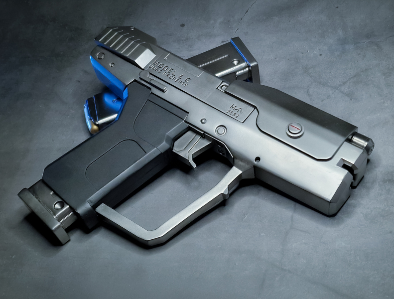 Halo M6C Magnum Blaster, 3D-printed in resin. The trigger moves, the magazine release button works, and the slide can be pulled back (I have a video on Instagram). Other than that, it has NO FUNCTION—you CAN’T actually shoot it, unless you run around shouting “Bang bang bang!”