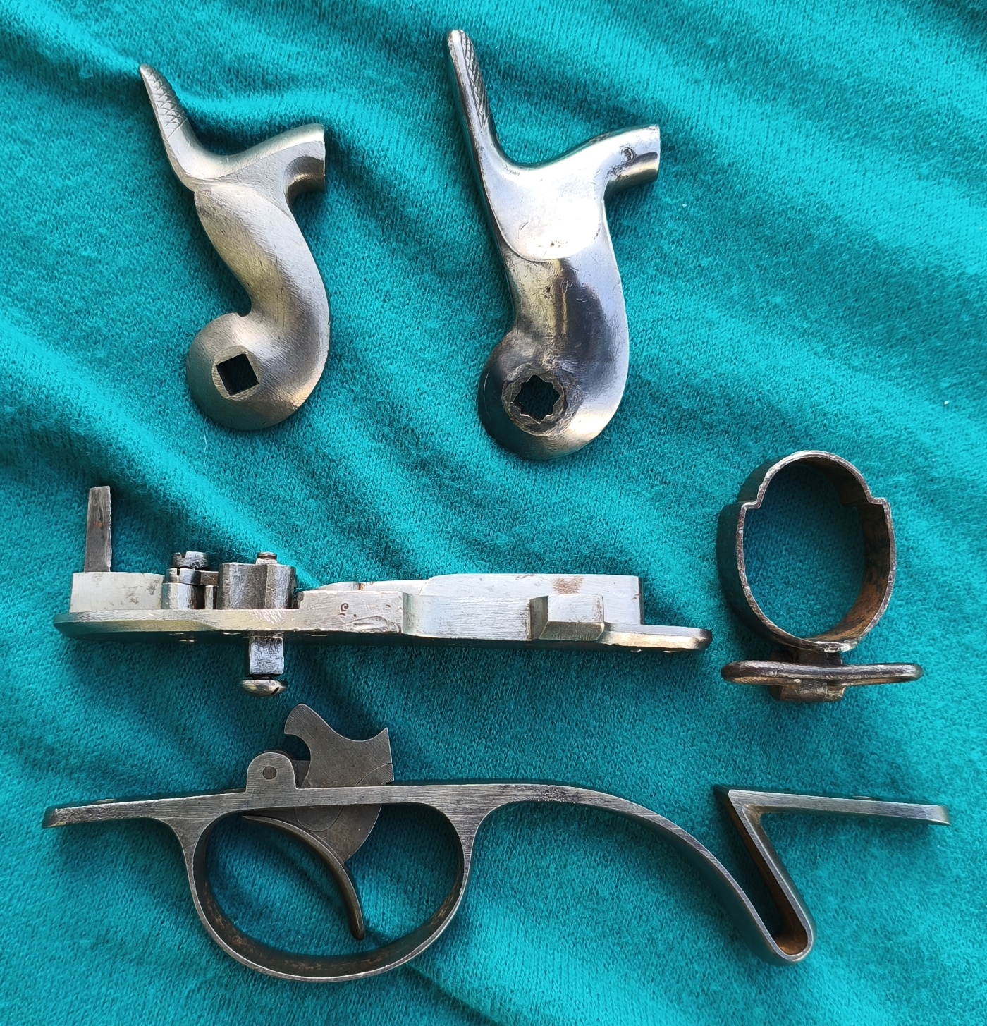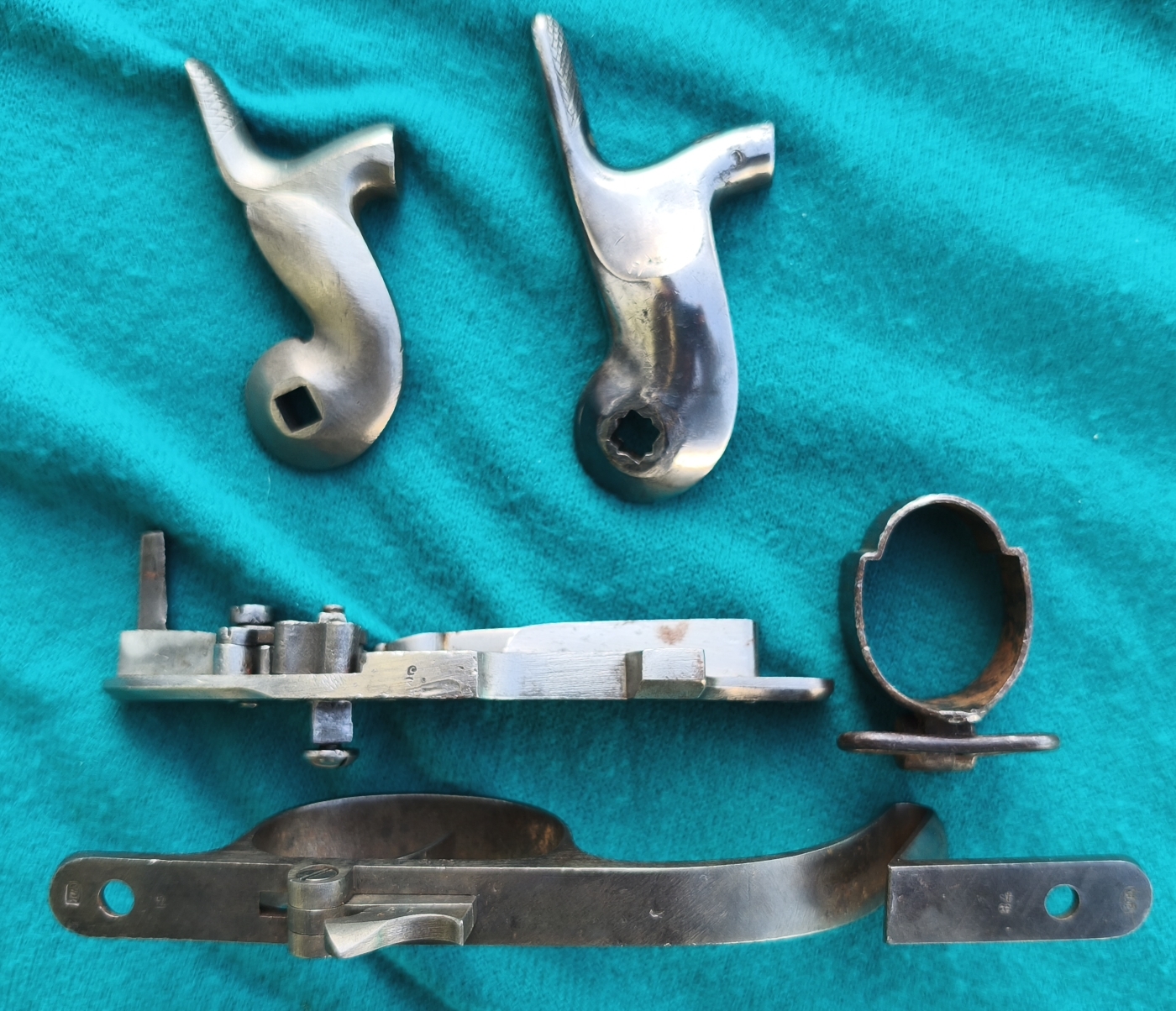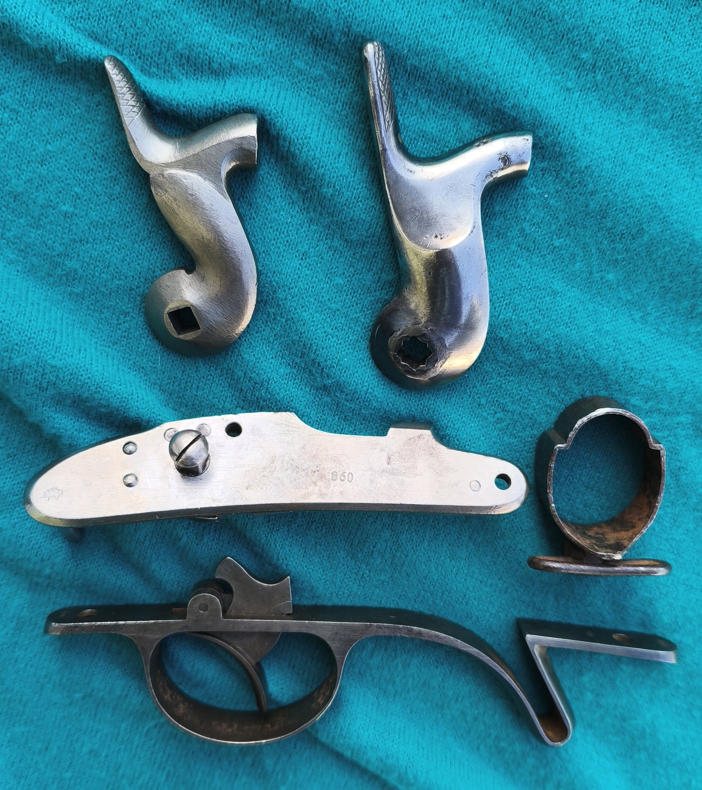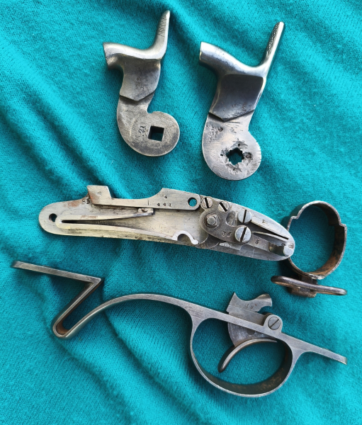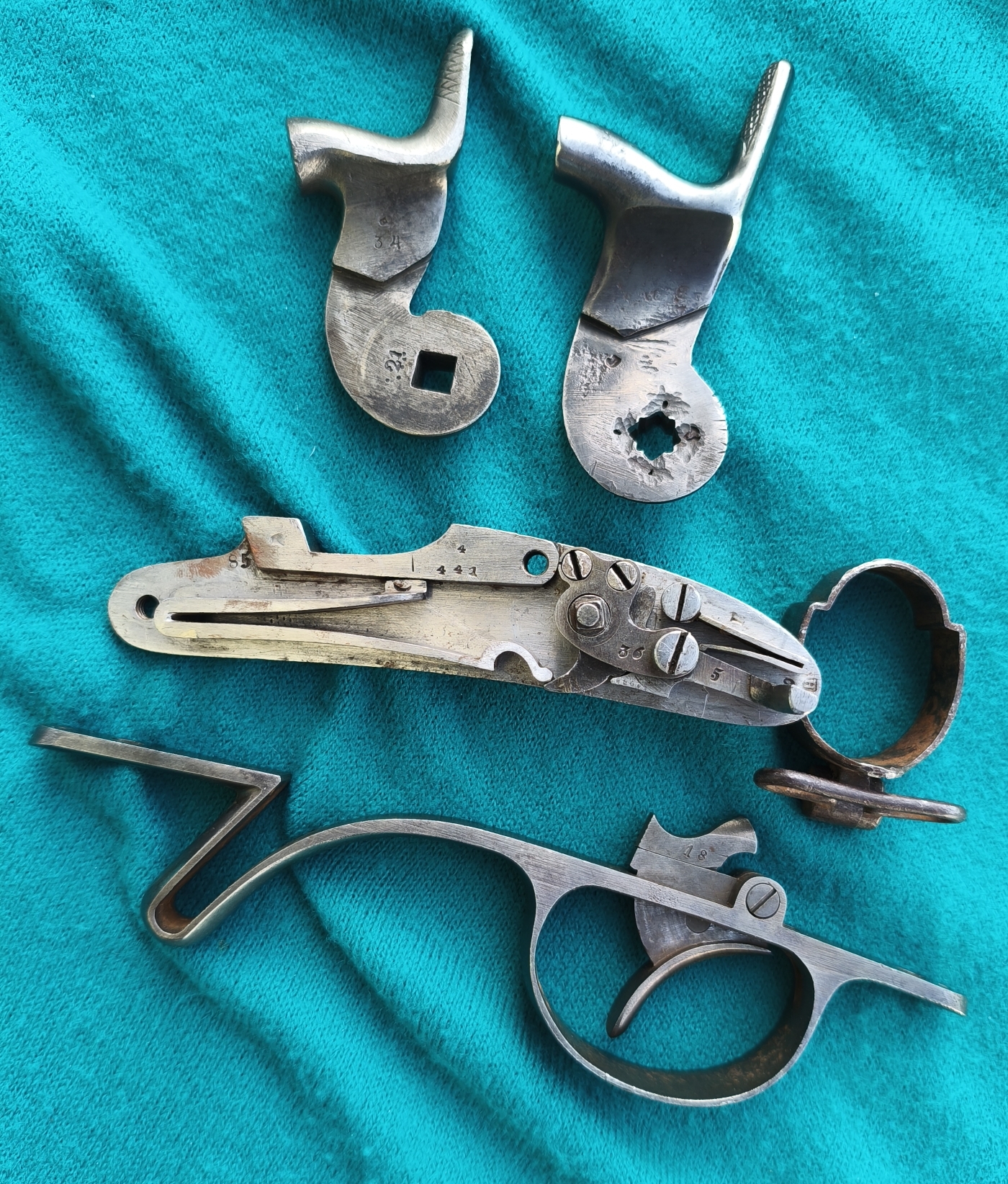 Konvolut antike Teile: Schloß Österreich M1860, gemarkt, Abzug mit Abzugsbügel, 2 Hähne.