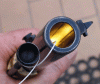 Ein Vorbesitzer hat anstelle des originalen festen Korns einen Kornsockel mit seitlich verstellbarem Korn montieren lassen, und auch die Kimmenblätter zusätzlich mit Bohrungen versehen lassen, sodaß man wahlweise über die V-Kimme oder durch die Lochkimme visieren kann.