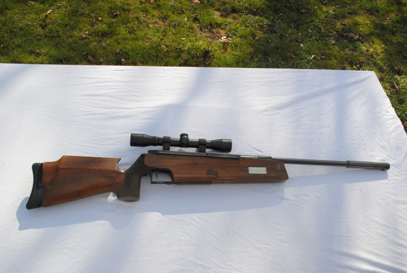 ich biete für einen Freund ein linksgeschäftetes Seitenspanner Feinwerk 300 S Match Luftgewehr mit F Zeichen an. Auf dem Luftgewehr ist über eine Festmontage, ein ZF HJB 4 x 32 mit Absehen 4 montiert. Die Schußleistung ist Feinwerk typisch gut. Das Luftgewehr hat alterstypische Gebrauchsspuren. Hinterschaftlänge bis Abzug ca. 32,5 cm siehe Bild.