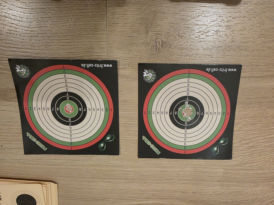 Das Luftgewehr hat eine klasse Trefferleistung (Siehe Zielscheiben ganz unten, das waren 10 Meter)