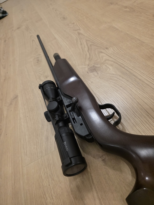 ich verkaufe hier ein Luftgewehr von Umarex, Airmagnum 850. Auf dem Luftgewehr ist ein sehr hochwertiges Zielfernrohr von Hawke für Luftgewehre verbaut (dieses hat alleine schon mehr als 150 Euro gekostet, wenn ich mich richtig erinnere). Der Vorteil dieses Glases ist, dass es die gleiche gute Qualität wie echte Büchsengläser hat, und dass man es auch im extremen Nahbereich (bis 6 Meter) scharf stellen kann. Da ich nur eine Begrenzte "Schiessbahn" zur Verfügung hatte, ist das sehr praktisch.