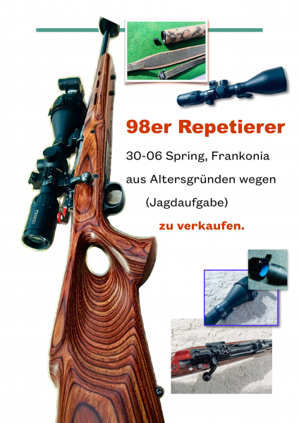 Geführte Jagdwaffe, 98er Repetierer 30-06 Spring Frankonia aus Altersgründen (Jagdaufgabe) zu verkaufen.