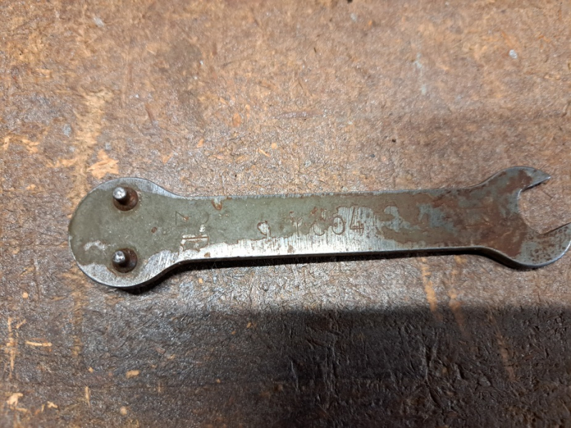 Aus Nachlass von meinem Großvater: kleiner Schraubenschlüssel mit Zapfen, gestempelt ?co4 für die Optik der schweren Laffete für MG42 der deutschen Wehrmacht.