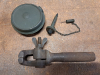 Aus Nachlass von meinem Großvater: Ölkännchen für MG34 und MG42, 100% komplett, 90 Prozent Farbe, Original, Topzustand, Code "evx". 1 Feilkloben für Waffenmeister MG34 oder MG42 mit unleserlichem Stempel. Die Teile gehören in die MG-Werkzeugtasche oder in den Einsatz für MG-Werkzeug in die Gurtkiste.