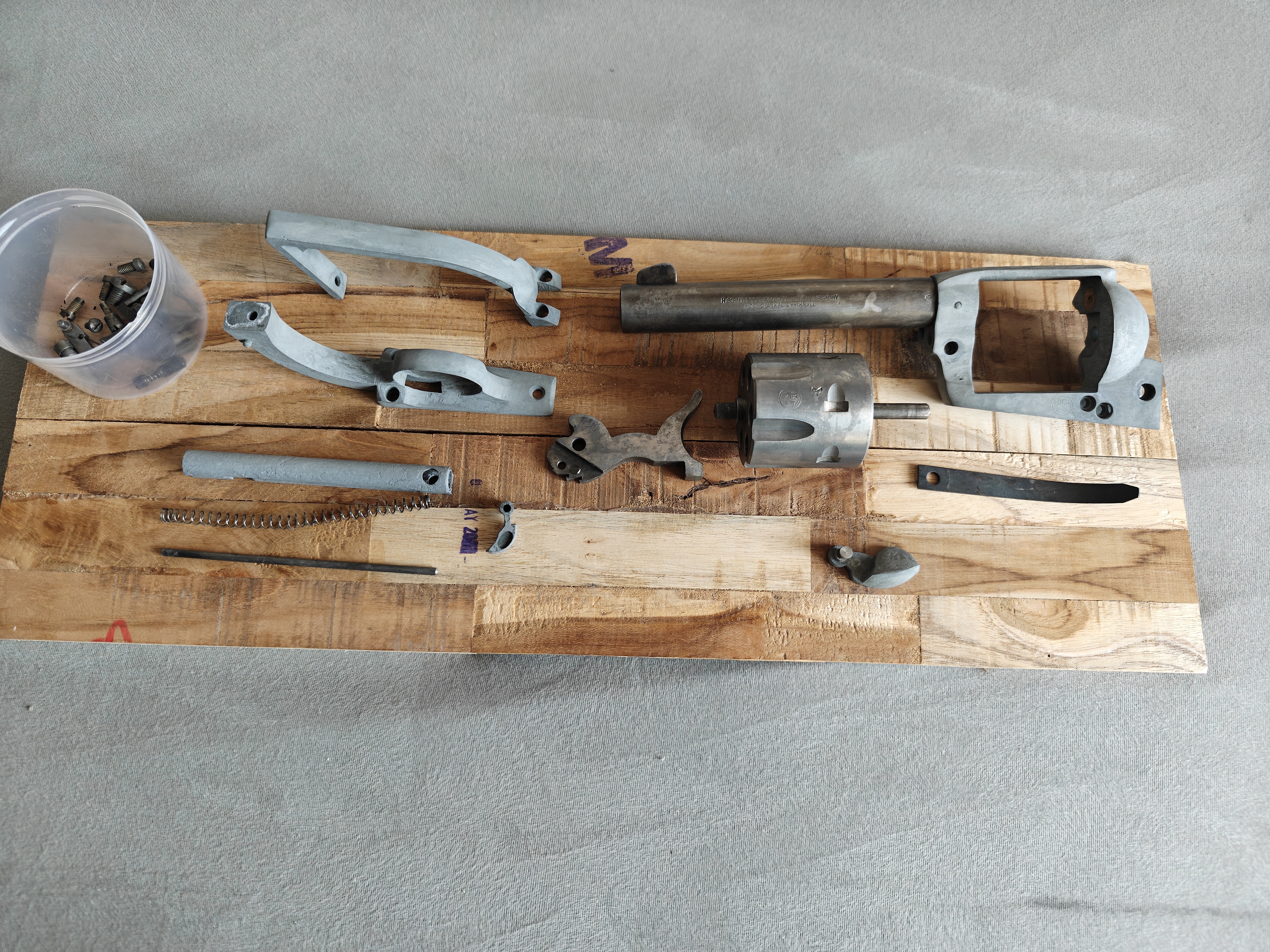 Der Revolver wurde komplett zerlegt und schonend "entbrüniert" und mit Natron gereinigt.