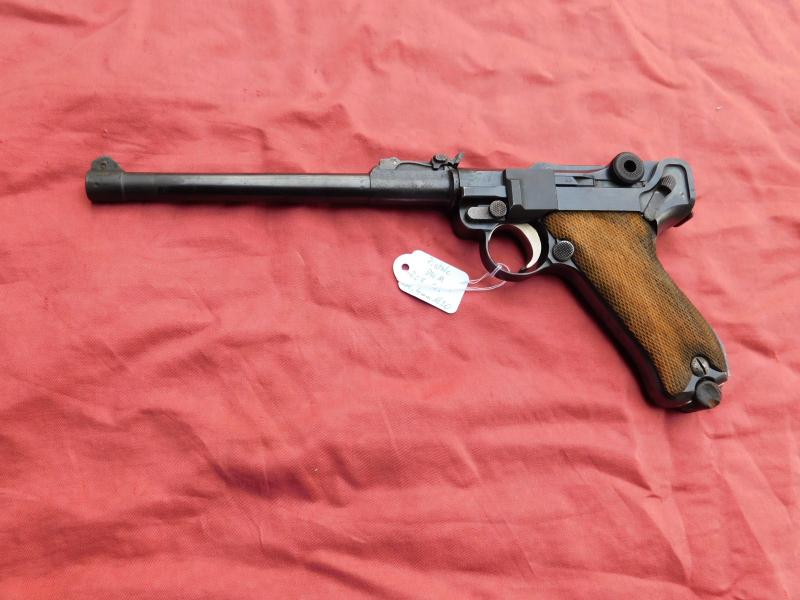 seltene, DWM P08 Kal. 4 mm M20, Ari Ausführung 1915, meiner Meinung nach überarbeitet und nicht nummergleich. Diese Waffen werden nur sehr selten angeboten und werden immer teurer.