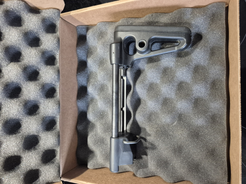 SIG SAUER Hinterschaft für die SIG SAUER MCX und SIG SAUER MPX Modelle, oder andere Systeme mit 1913 Picatinny Rail. Bei diesem Gewehrschaft handelt es sich um einen Schubschaft mit gummierter Schaftkappe, der in 3 unterschiedlichen Positionen arretiert werden kann. So ermöglicht der SIG SAUER Teleskop Schaft eine optimale Anpassung an den Schützen. Außerdem sind 2 QD Aufnahmen dran, sowie ein Bügel zur Aufnahme mit HK- KarabinerHaken. War beim Kauf meiner MCX Virtus dran, wurde aber durch einen anderen ersetzt. Neupreis ca. 300€