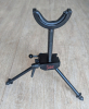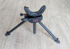 Die Einstellhöhe beträgt min 17cm/ max. 28 cm, stufenlos einstellbar. Das Dreibein befindet sich in einem guten gebrauchten Zustand, es funktioniert alles tadellos. Einzig der Gummi in der Gabel ist leicht eingerissen (Bild 4 und 5).